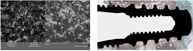 In case there are Calcium Phosphate leftover residue on the implant surface, it adds to the osteogenic value of the implant due to the osteoconductive properties it possesses, allowing it to be completely resorbed and replaced by new bone cells.